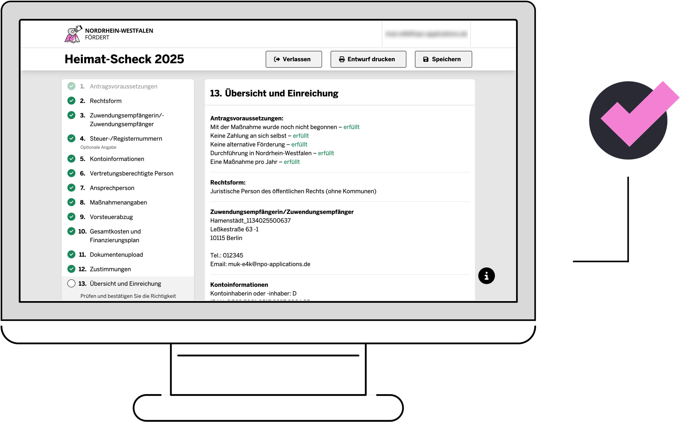 Alles vollständig und richtig? Bevor Sie den Antrag abschicken, erhalten Sie eine Zusammenfassung Ihrer Eingaben. Hier können Sie alle Angaben noch einmal sorgfältig kontrollieren.